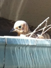 Last year the Doves built their nest in the same exact spot. A nasty Bluebird came along, feathers